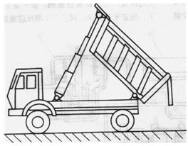 汽车举升机构是指可使车厢后倾(见图5a>或侧倾(见图5b),以便完成自卸动作。吨位较小的车用液压缸直接顶升。5 - 15t的重型汽车除有顶升液压缸外还有机械杠杆力放大系统。